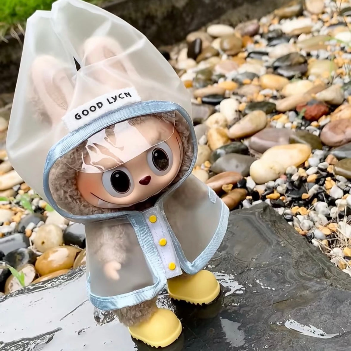 Rain Ready! Labubu Raincoat for Gen 1/2/3 – Trendy Streetwear for Soft Vinyl Figures(not including the doll)