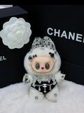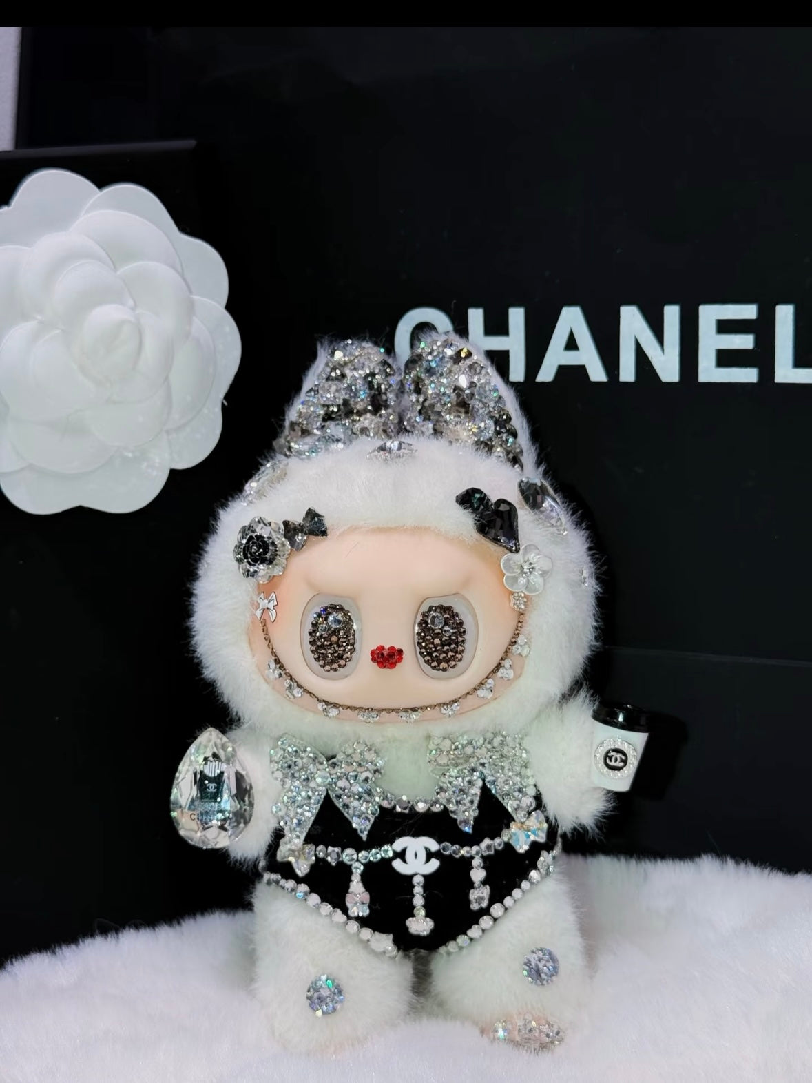 This authentic standing Labubu doll charm is a luxurious collectible for true fans. Made with a soft vinyl face and plush body, each piece is individually handmade and decorated with real Swarovski crystals. Modified from official figures, no two are ever the same — each one is truly one-of-a-kind.